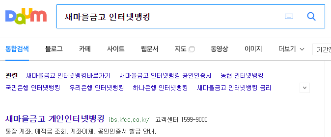 새마을금고 또한 인터넷뱅킹으로 간편하게 이용을 하실 수가 있습니다. 아래처럼 검색을 하셔도 되고 바로가기 메뉴를 이용하실 수도 있습니다.
