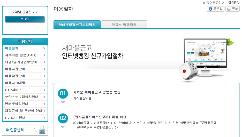 처음 인터넷뱅킹을 신청하신 고객