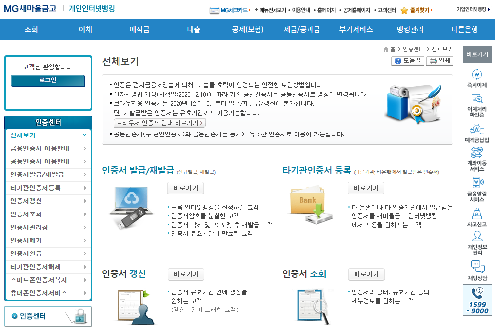 타 은행이나 타 인증기관에서 발급받은 인증서를 새마을금고 인터넷뱅킹 에서 사용을 원하시는 고객